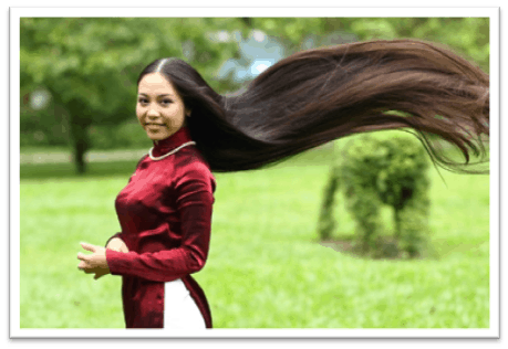 As you can see that picture. That is the picture about Vietnam woman and her long straight hair. What a beautiful picture!